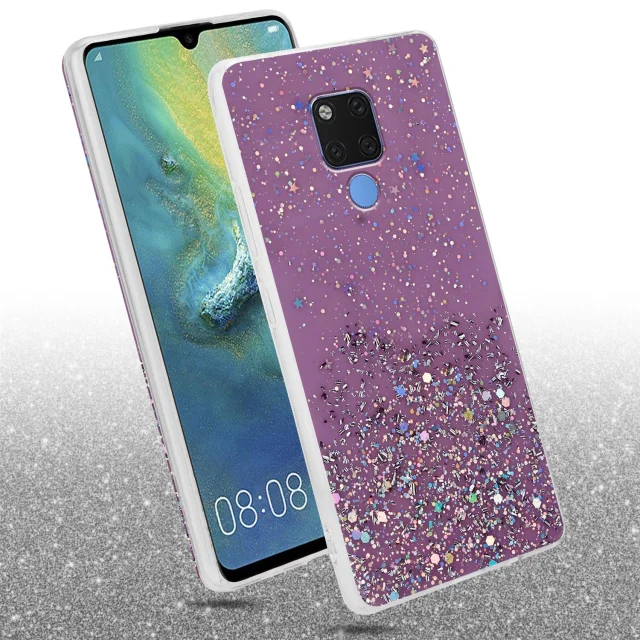 Cadorabo Case, združljiv s Huawei v vijolični barvi z bleščicami - zaščitni pokrov iz fleksibilnega silikona TPU s penečimi bleščicami