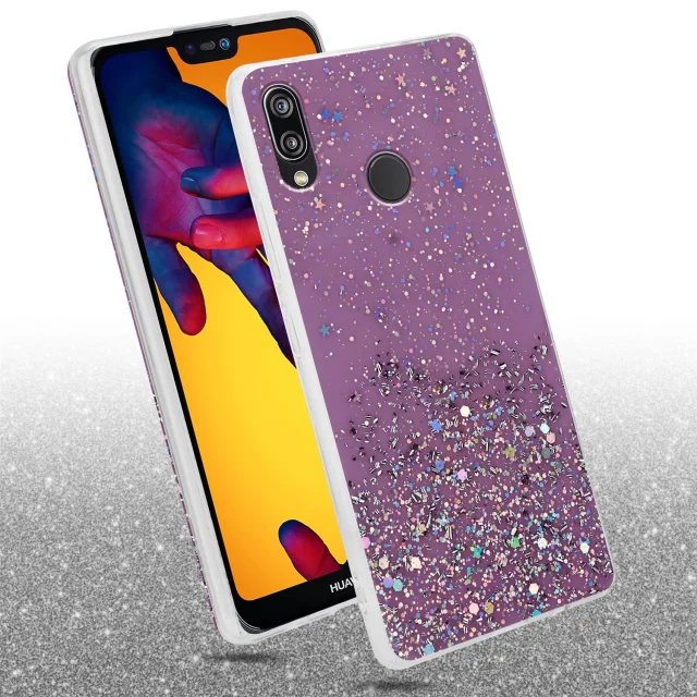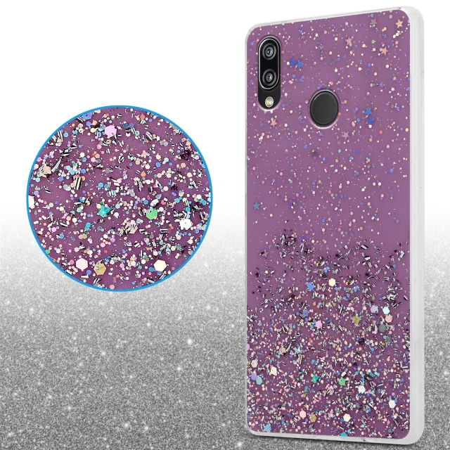 Cadorabo Case, združljiv s Huawei v vijolični barvi z bleščicami - zaščitni pokrov iz fleksibilnega silikona TPU s penečimi bleščicami