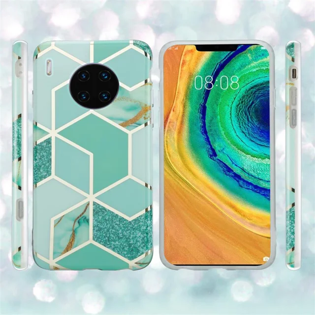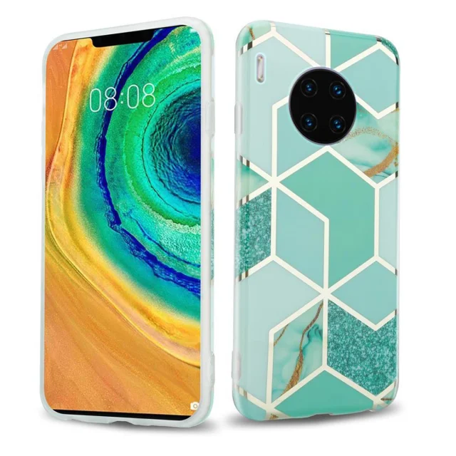 Cadorabo Case, združljiv s Huawei v zeleni svetlo zeleni zlati marmor št. 3 - zaščitni pokrov iz silikona TPU z vzorcem mozaik