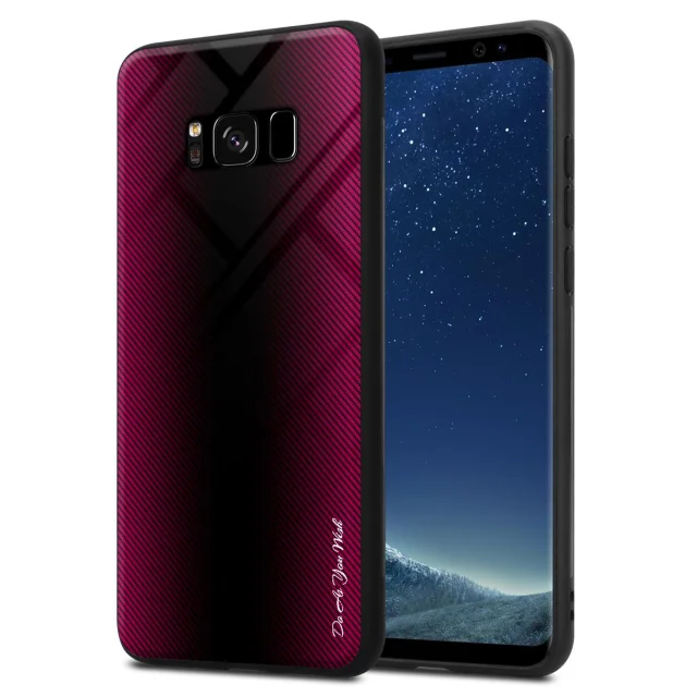 Cadorabo Case, združljiv s Samsung - Stripe Optics v Crimson Pink - Zaščitni pokrov iz silikona TPU in hrbta iz kaljenega stekla