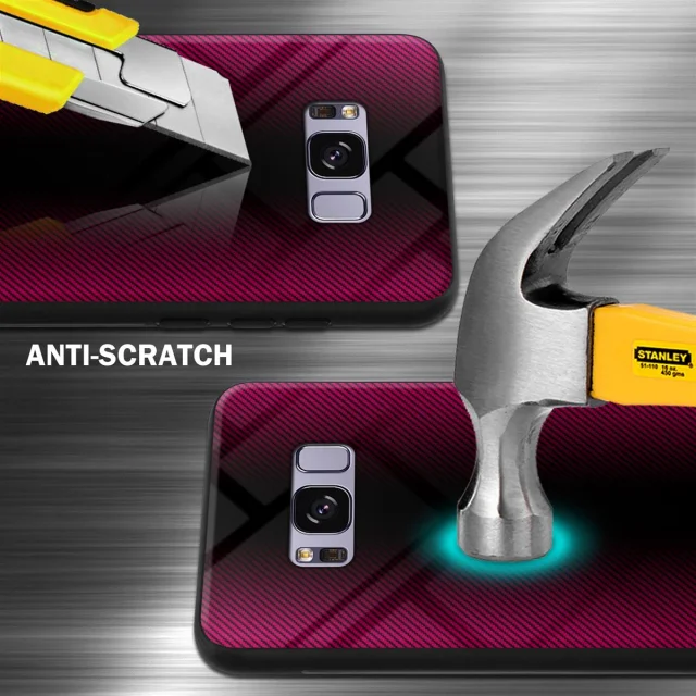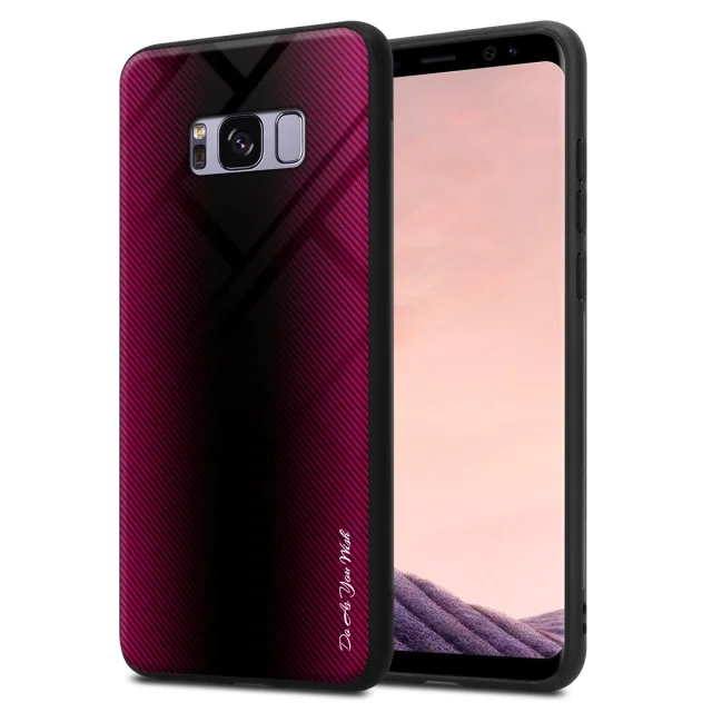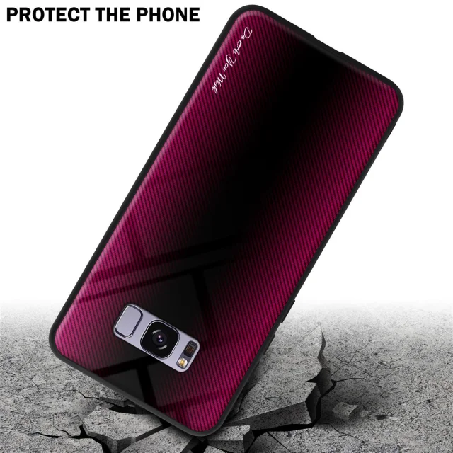 Cadorabo Case, združljiv s Samsung - Stripe Optics v Crimson Pink - Zaščitni pokrov iz silikona TPU in hrbta iz kaljenega stekla