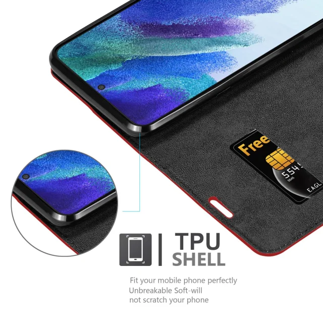 Cadorabo Case, združljiv s Samsungom v Apple Red - Zaščitni pokrov z magnetnim zapiranjem, stoječo funkcijo in režo za kartico
