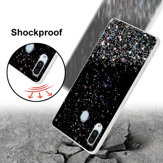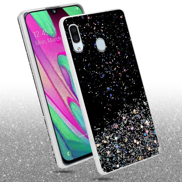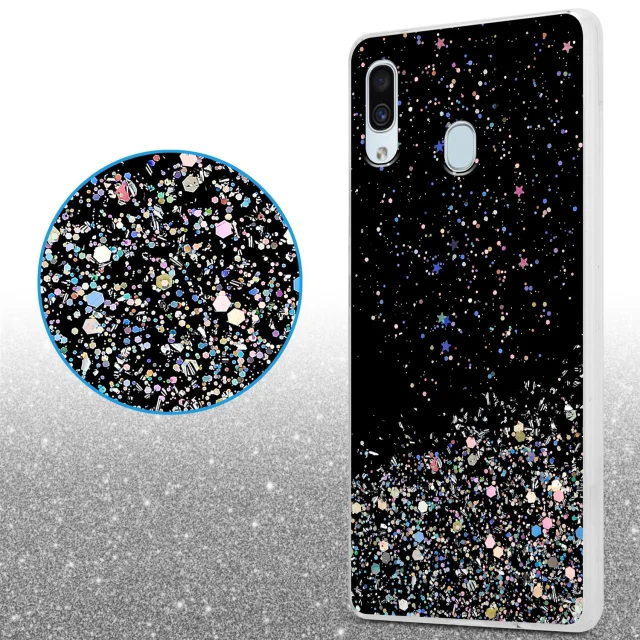 Cadorabo Case, združljiv s Samsungom v črni barvi z bleščicami - zaščitni pokrov iz fleksibilnega silikona TPU s penečimi bleščicami