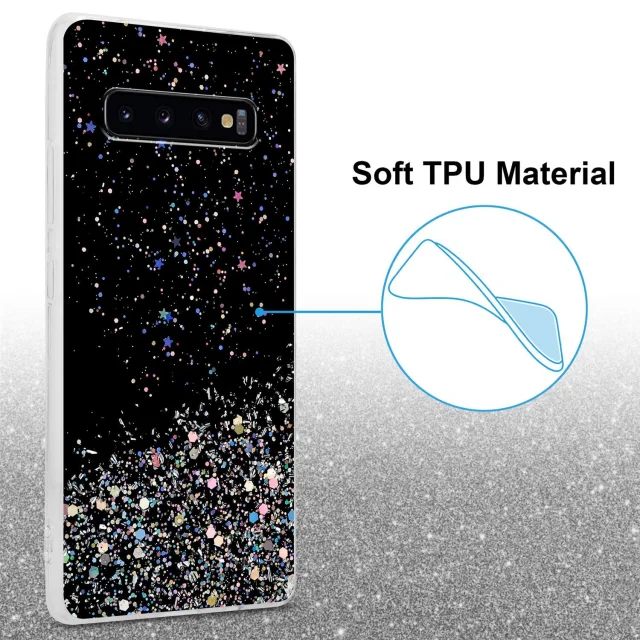 Cadorabo Case, združljiv s Samsungom v črni barvi z bleščicami - zaščitni pokrov iz fleksibilnega silikona TPU s penečimi bleščicami