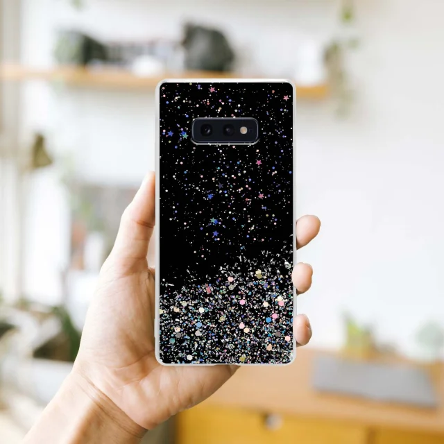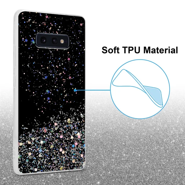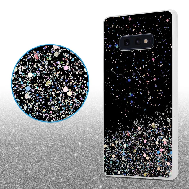 Cadorabo Case, združljiv s Samsungom v črni barvi z bleščicami - zaščitni pokrov iz fleksibilnega silikona TPU s penečimi bleščicami