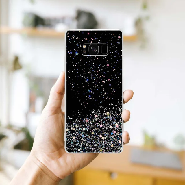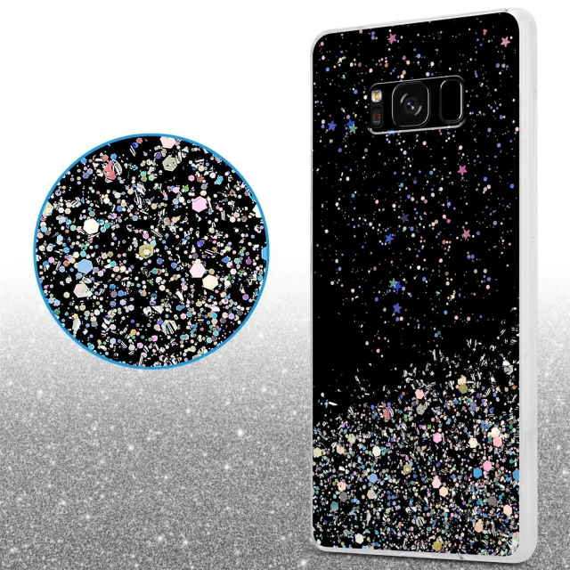 Cadorabo Case, združljiv s Samsungom v črni barvi z bleščicami - zaščitni pokrov iz fleksibilnega silikona TPU s penečimi bleščicami