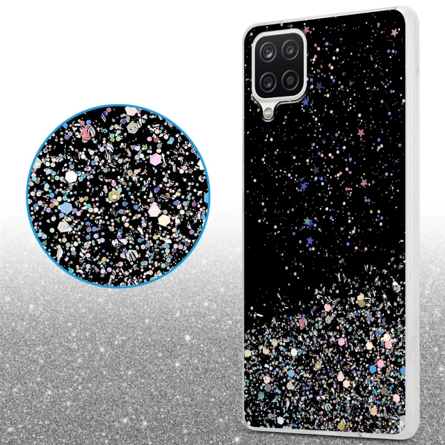 Cadorabo Case, združljiv s Samsungom v črni barvi z bleščicami - zaščitni pokrov iz fleksibilnega silikona TPU s penečimi bleščicami