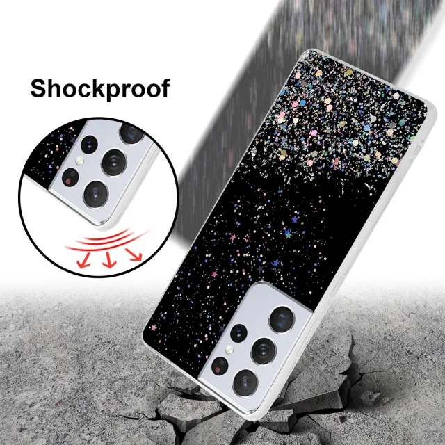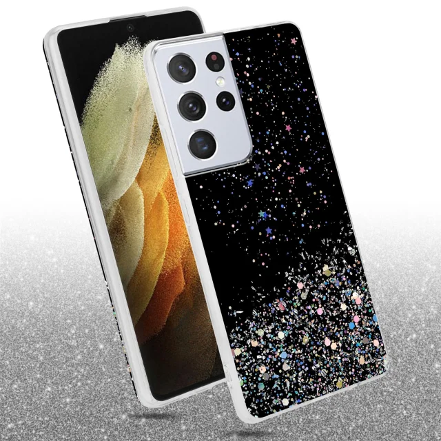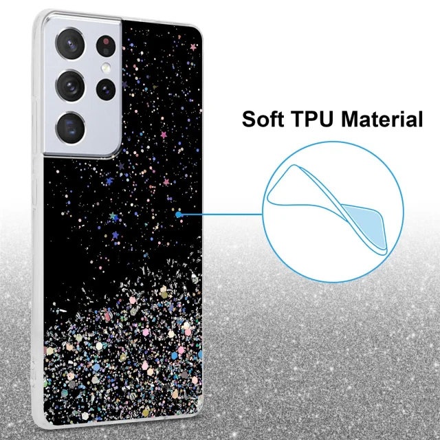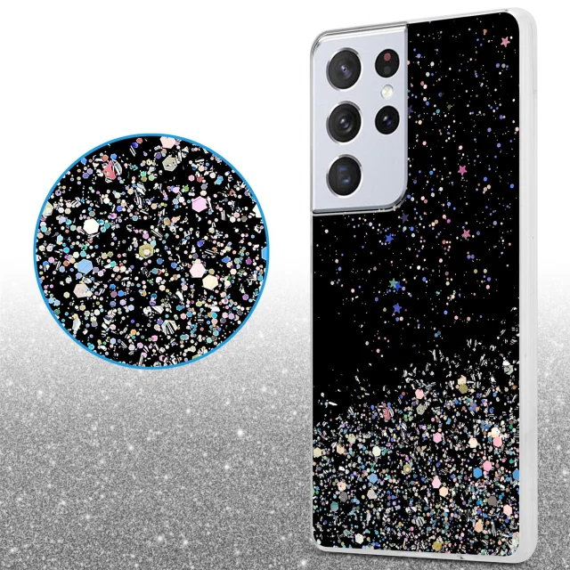 Cadorabo Case, združljiv s Samsungom v črni barvi z bleščicami - zaščitni pokrov iz fleksibilnega silikona TPU s penečimi bleščicami