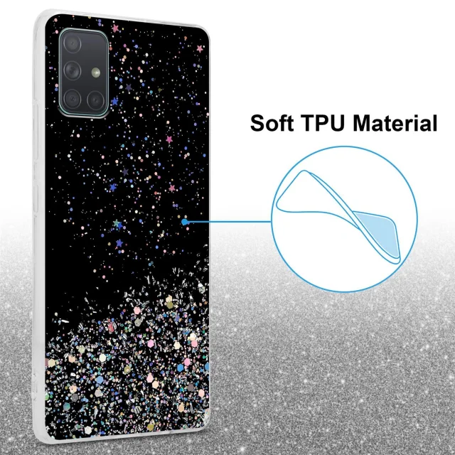 Cadorabo Case, združljiv s Samsungom v črni barvi z bleščicami - zaščitni pokrov iz fleksibilnega silikona TPU s penečimi bleščicami