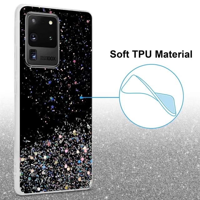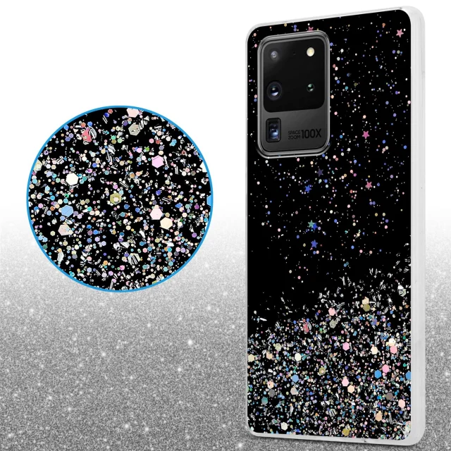 Cadorabo Case, združljiv s Samsungom v črni barvi z bleščicami - zaščitni pokrov iz fleksibilnega silikona TPU s penečimi bleščicami