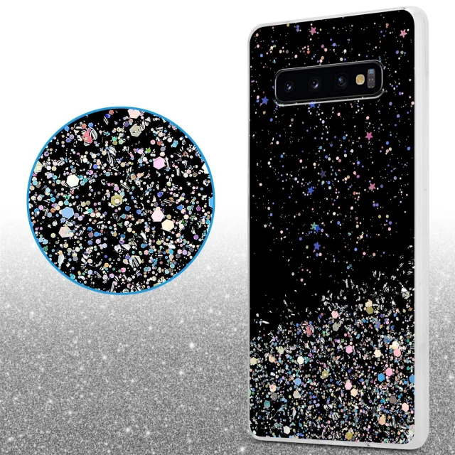 Cadorabo Case, združljiv s Samsungom v črni barvi z bleščicami - zaščitni pokrov iz fleksibilnega silikona TPU s penečimi bleščicami