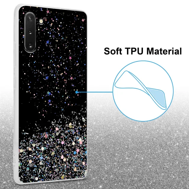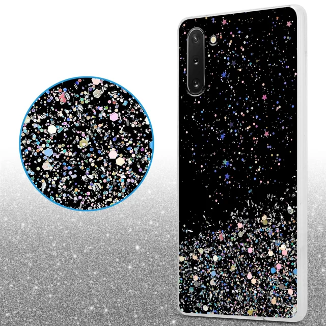 Cadorabo Case, združljiv s Samsungom v črni barvi z bleščicami - zaščitni pokrov iz fleksibilnega silikona TPU s penečimi bleščicami
