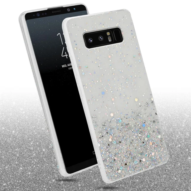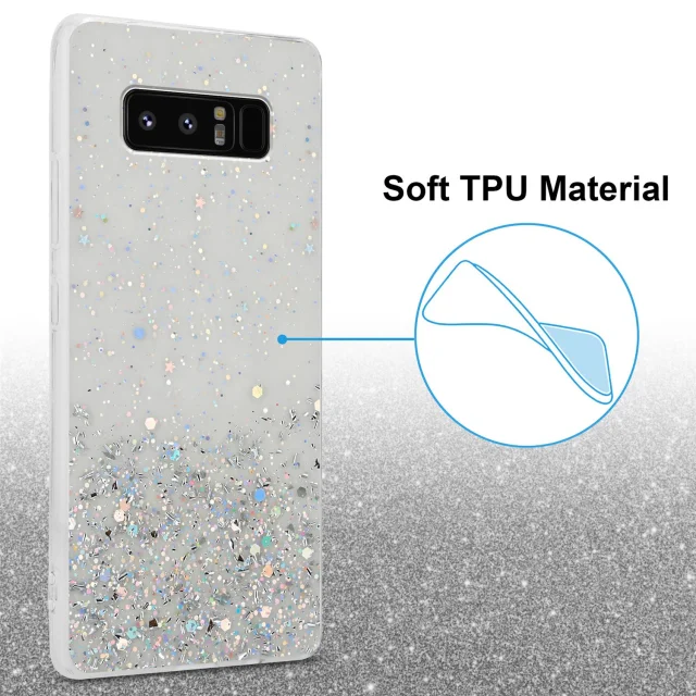 Cadorabo Case, združljiv s Samsungom v prozornem z bleščicami - zaščitnim pokrovom, narejen iz fleksibilnega silikona TPU s penečimi bleščicami
