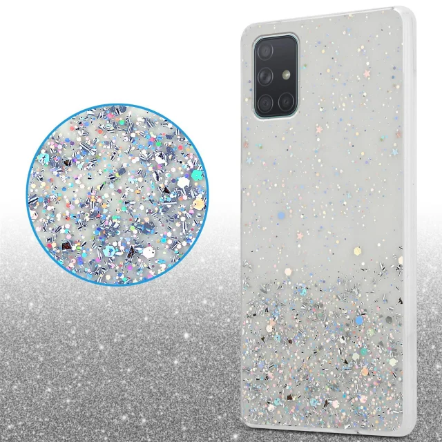 Cadorabo Case, združljiv s Samsungom v prozornem z bleščicami - zaščitnim pokrovom, narejen iz fleksibilnega silikona TPU s penečimi bleščicami