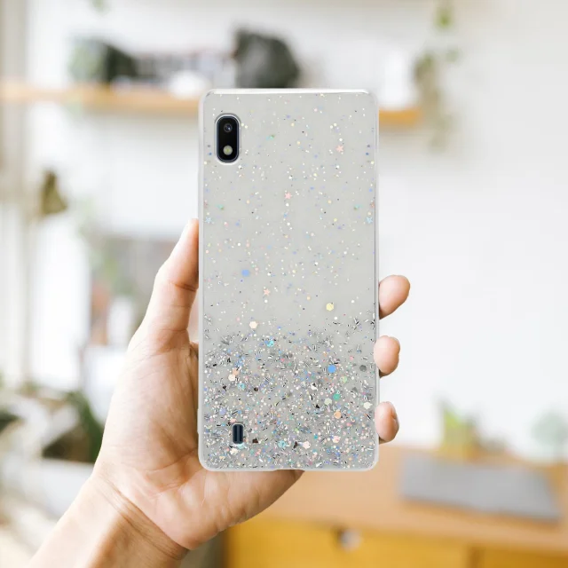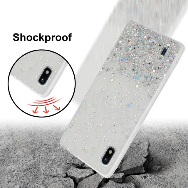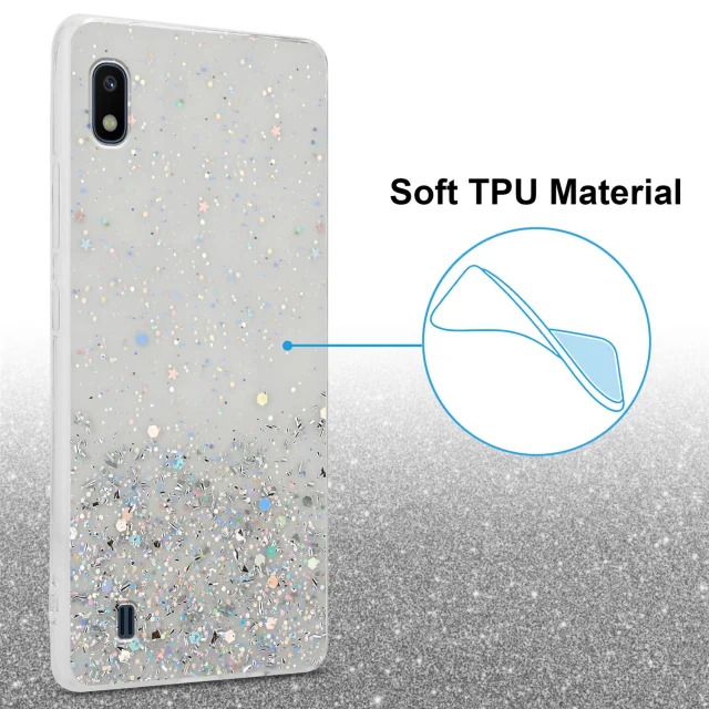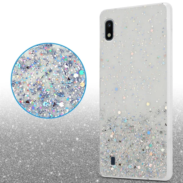 Cadorabo Case, združljiv s Samsungom v prozornem z bleščicami - zaščitnim pokrovom, narejen iz fleksibilnega silikona TPU s penečimi bleščicami