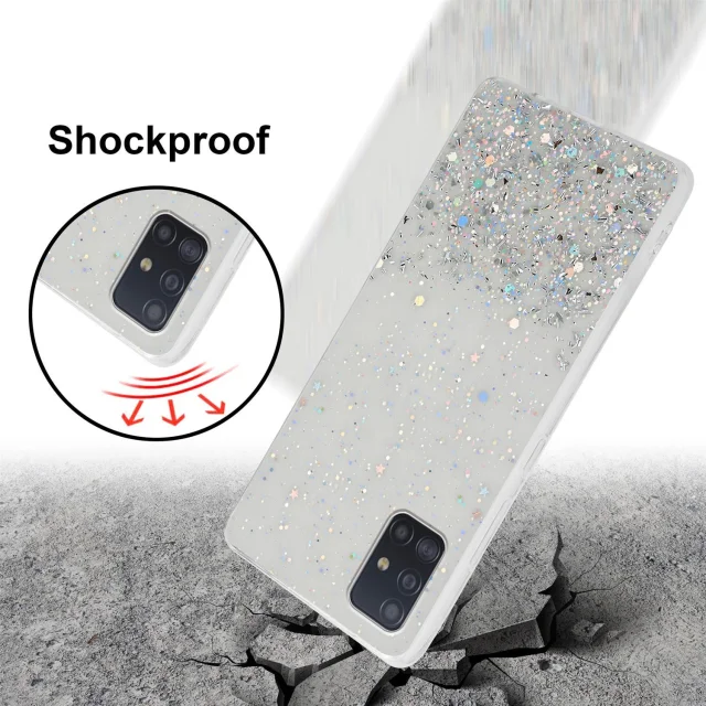 Cadorabo Case, združljiv s Samsungom v prozornem z bleščicami - zaščitnim pokrovom, narejen iz fleksibilnega silikona TPU s penečimi bleščicami