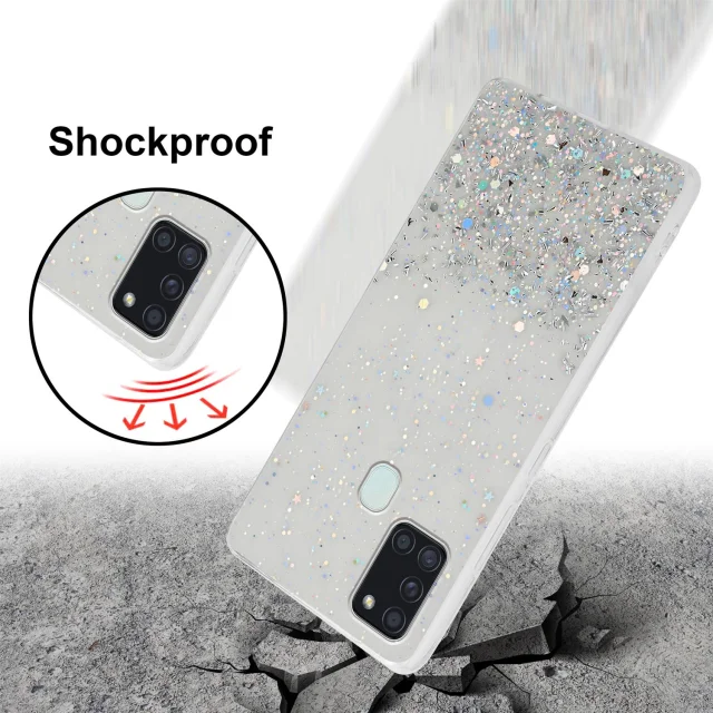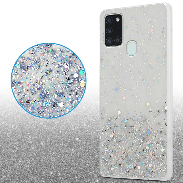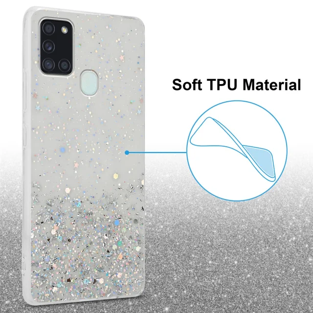 Cadorabo Case, združljiv s Samsungom v prozornem z bleščicami - zaščitnim pokrovom, narejen iz fleksibilnega silikona TPU s penečimi bleščicami