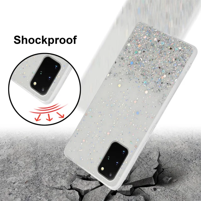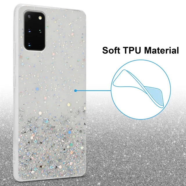 Cadorabo Case, združljiv s Samsungom v prozornem z bleščicami - zaščitnim pokrovom, narejen iz fleksibilnega silikona TPU s penečimi bleščicami