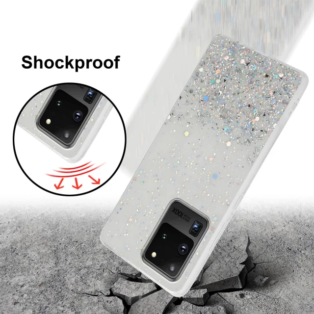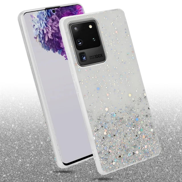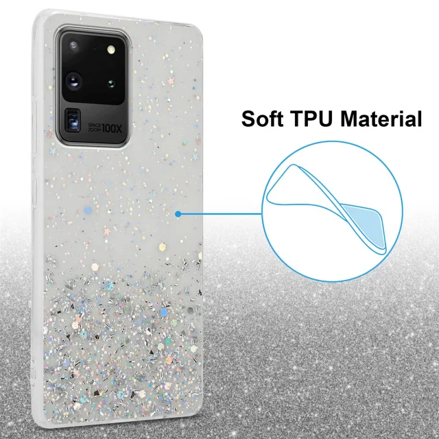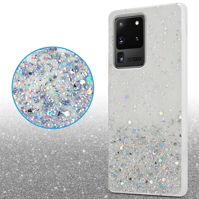 Cadorabo Case, združljiv s Samsungom v prozornem z bleščicami - zaščitnim pokrovom, narejen iz fleksibilnega silikona TPU s penečimi bleščicami