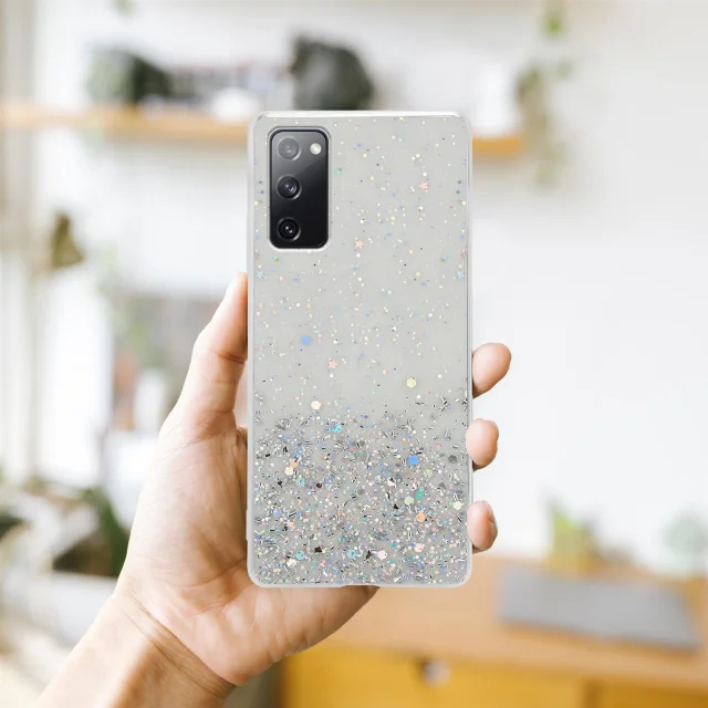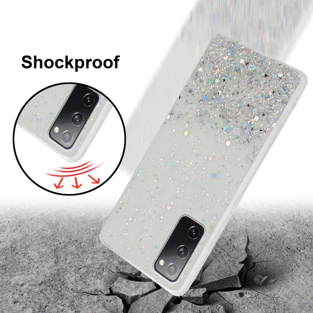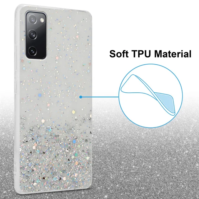 Cadorabo Case, združljiv s Samsungom v prozornem z bleščicami - zaščitnim pokrovom, narejen iz fleksibilnega silikona TPU s penečimi bleščicami