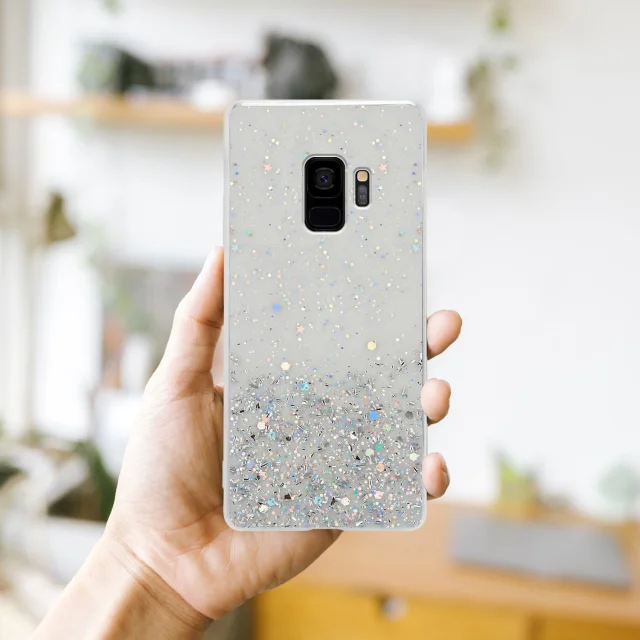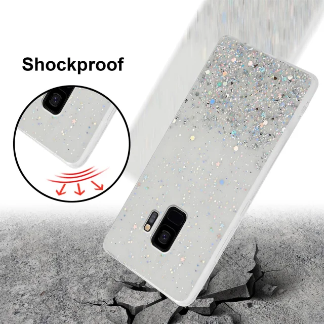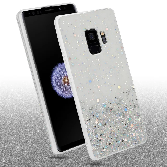 Cadorabo Case, združljiv s Samsungom v prozornem z bleščicami - zaščitnim pokrovom, narejen iz fleksibilnega silikona TPU s penečimi bleščicami