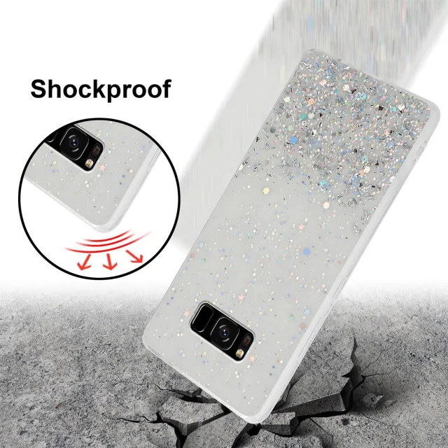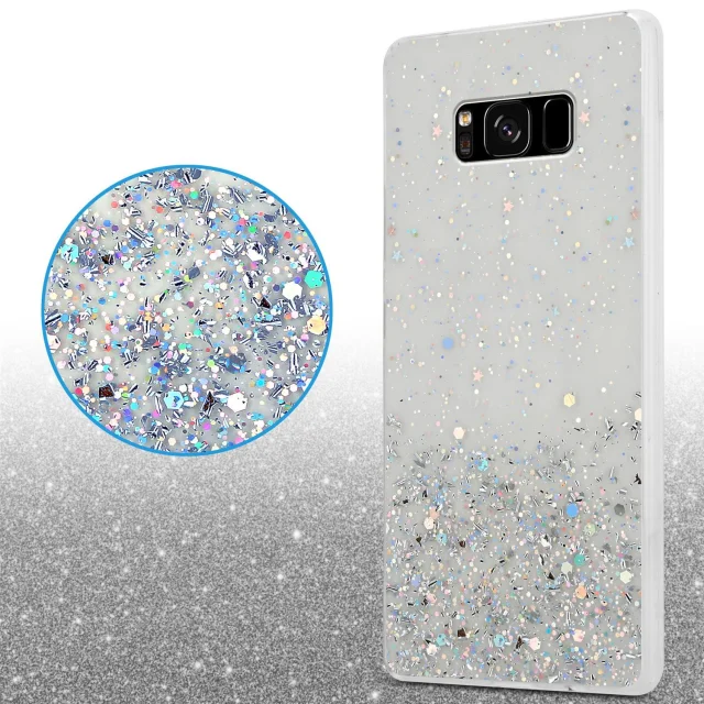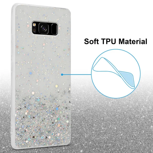 Cadorabo Case, združljiv s Samsungom v prozornem z bleščicami - zaščitnim pokrovom, narejen iz fleksibilnega silikona TPU s penečimi bleščicami