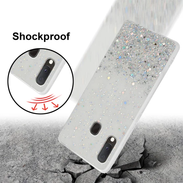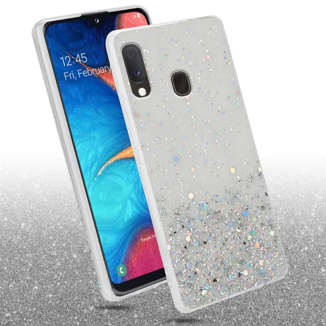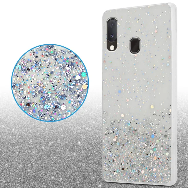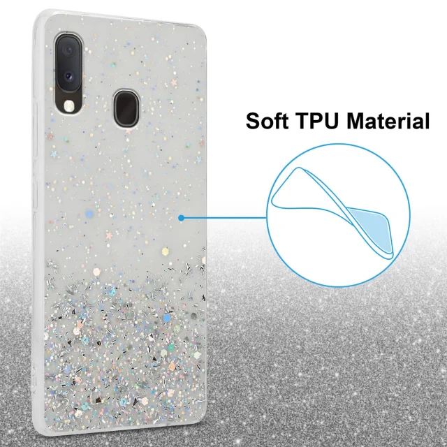 Cadorabo Case, združljiv s Samsungom v prozornem z bleščicami - zaščitnim pokrovom, narejen iz fleksibilnega silikona TPU s penečimi bleščicami