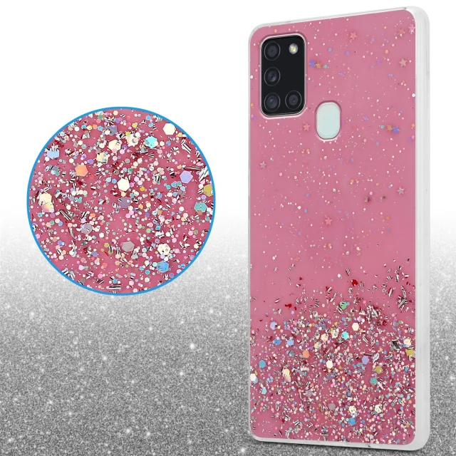 Cadorabo Case, združljiv s Samsungom v roza barvi z bleščicami - zaščitni pokrov iz fleksibilnega silikona TPU s penečimi bleščicami