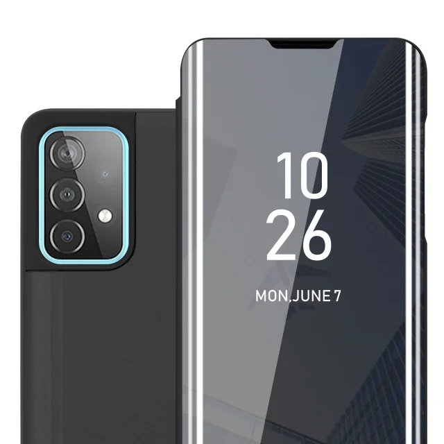 CADORABO CASE, združljiv s Samsungom v turmalinski črni barvi - prozorno za zaščito z ogledalom z ogledalom s funkcijo stojala 360 stopinj zaščita