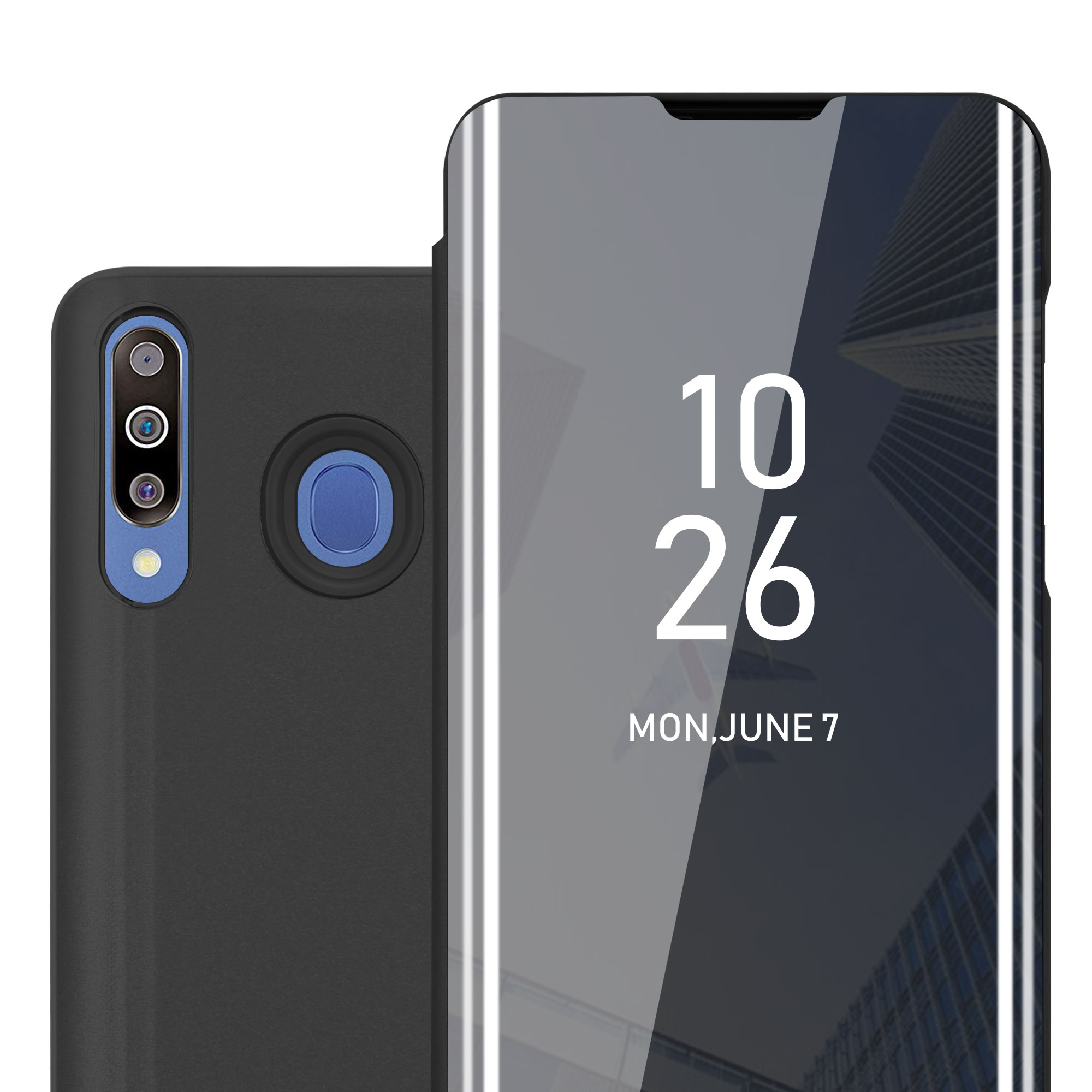 CADORABO CASE, združljiv s Samsungom v turmalinski črni barvi - prozorno za zaščito z ogledalom z ogledalom s funkcijo stojala 360 stopinj zaščita