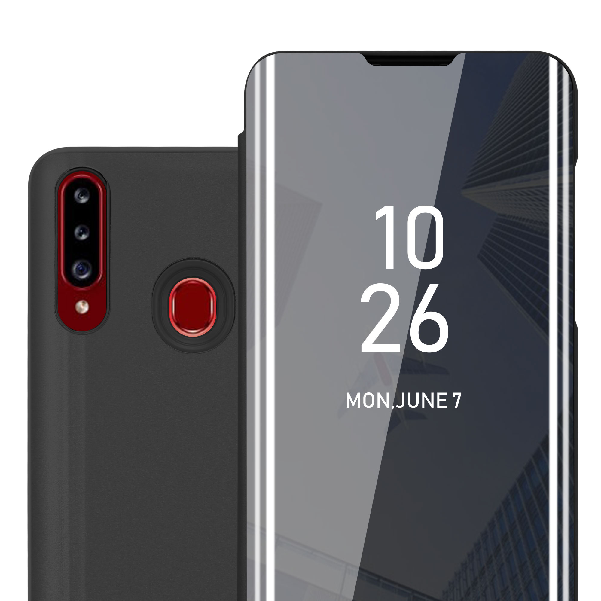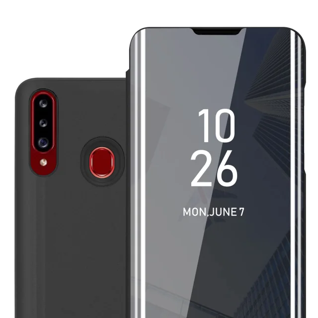 CADORABO CASE, združljiv s Samsungom v turmalinski črni barvi - prozorno za zaščito z ogledalom z ogledalom s funkcijo stojala 360 stopinj zaščita