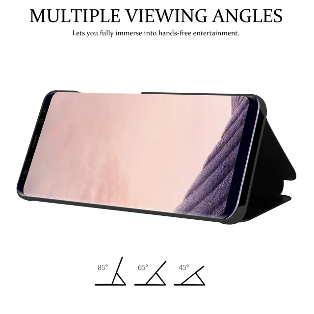 CADORABO CASE, združljiv s Samsungom v turmalinski črni barvi - prozorno za zaščito z ogledalom z ogledalom s funkcijo stojala 360 stopinj zaščita