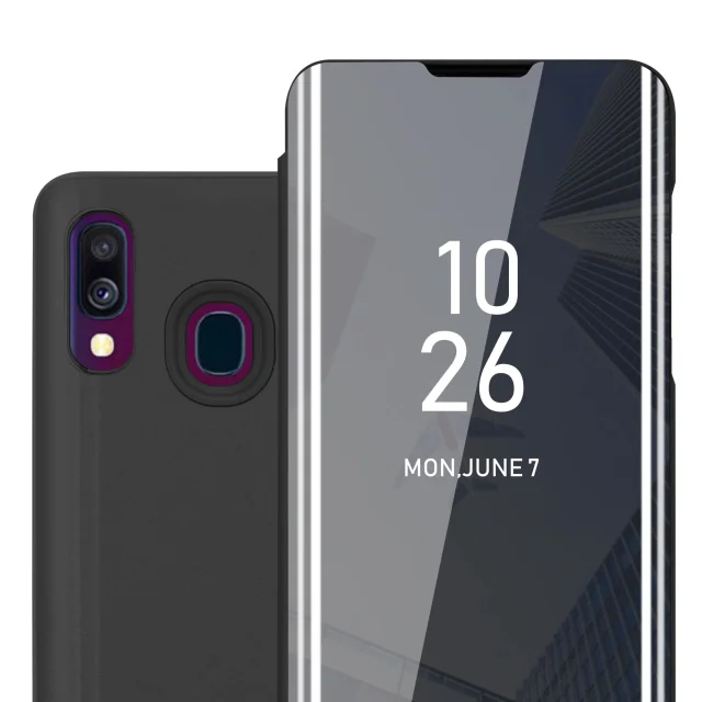 CADORABO CASE, združljiv s Samsungom v turmalinski črni barvi - prozorno za zaščito z ogledalom z ogledalom s funkcijo stojala 360 stopinj zaščita