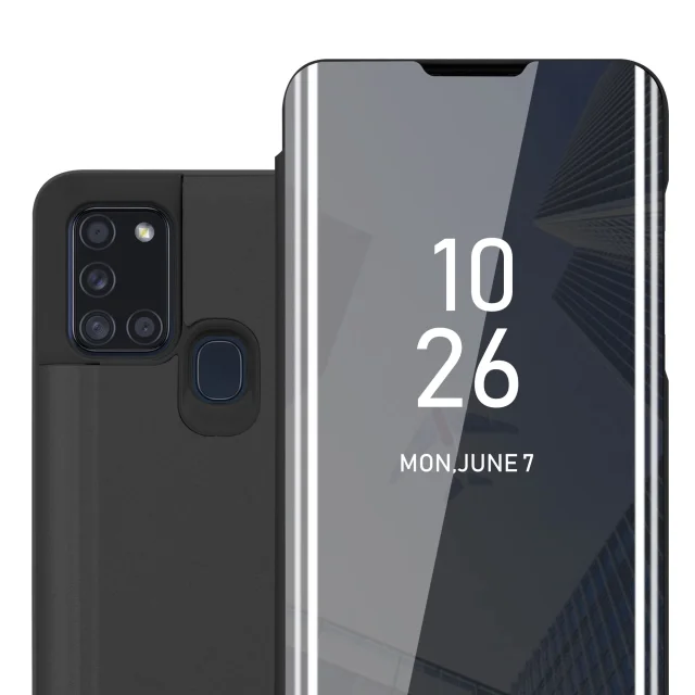 CADORABO CASE, združljiv s Samsungom v turmalinski črni barvi - prozorno za zaščito z ogledalom z ogledalom s funkcijo stojala 360 stopinj zaščita