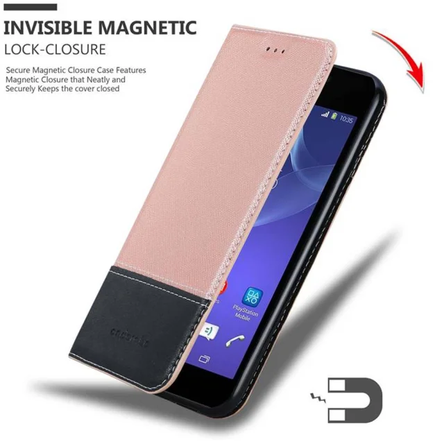 Cadorabo Case, združljiv s Sonyjem v rose Gold Black - zaščitni pokrov z magnetnim zapiranjem, stoječo funkcijo in režo za kartico