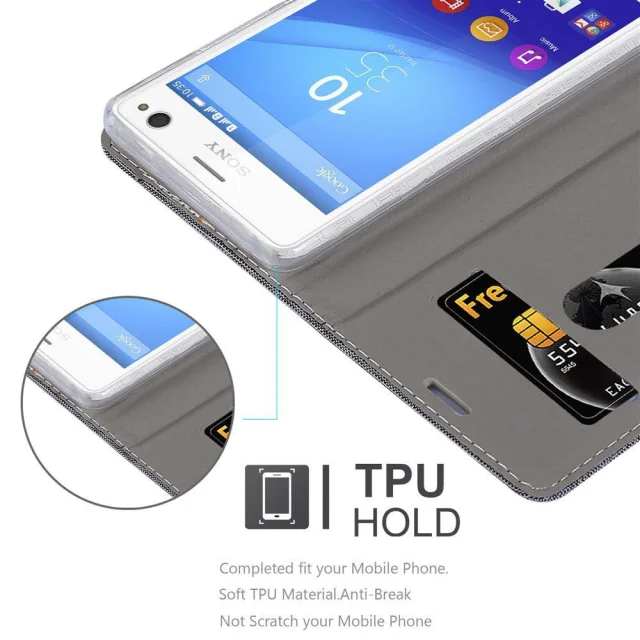 Cadorabo Case, združljiv s Sonyjem v sivi črni barvi - zaščitni pokrov z magnetnim zapiranjem, stoječo funkcijo in režo za kartico