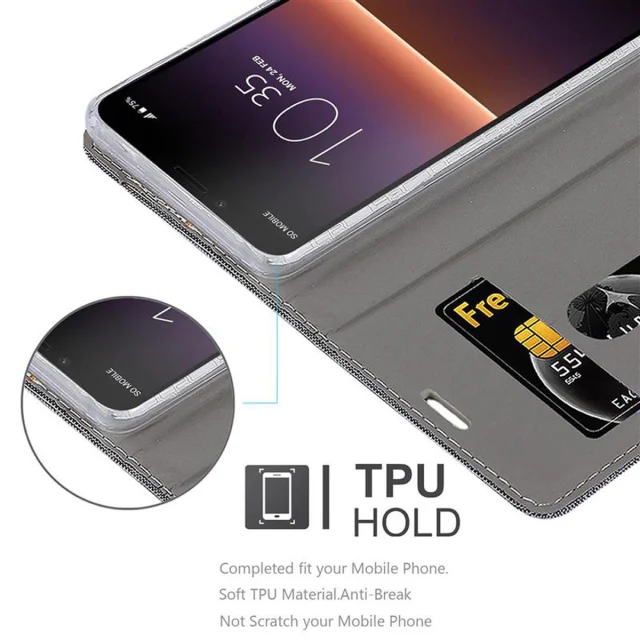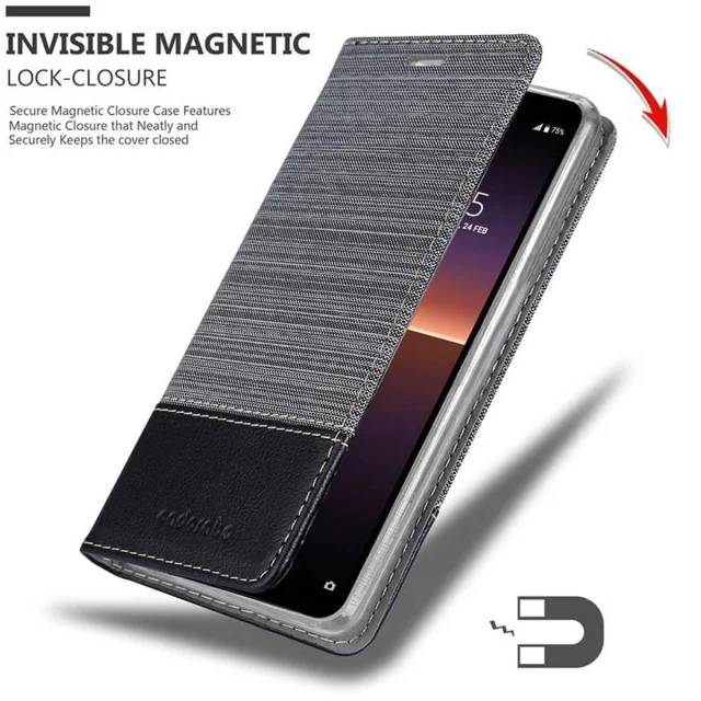 Cadorabo Case, združljiv s Sonyjem v sivi črni barvi - zaščitni pokrov z magnetnim zapiranjem, stoječo funkcijo in režo za kartico