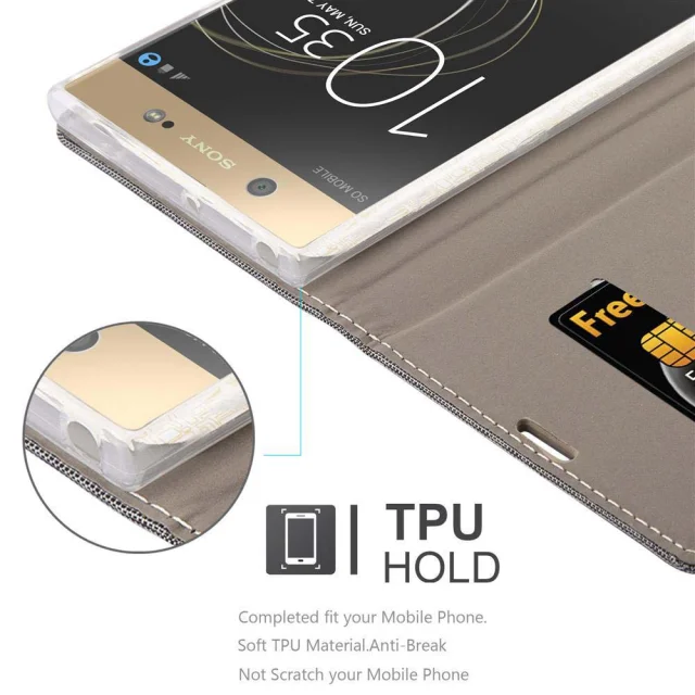 Cadorabo Case, združljiv s Sonyjem v sivi črni barvi - zaščitni pokrov z magnetnim zapiranjem, stoječo funkcijo in režo za kartico