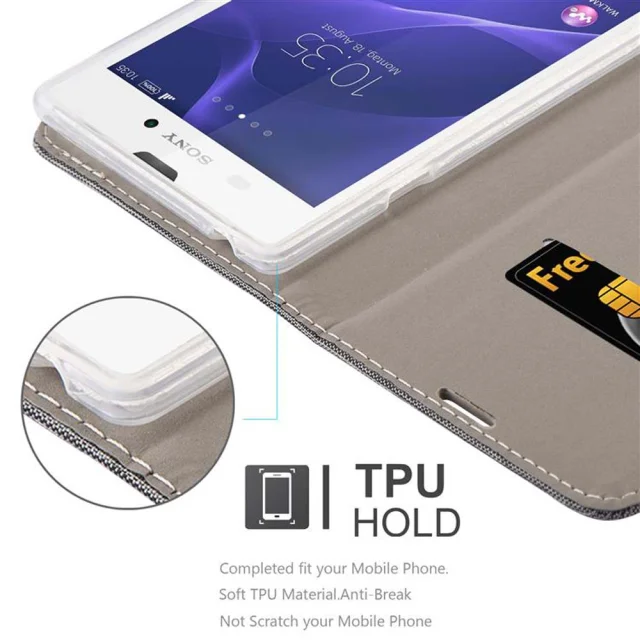 Cadorabo Case, združljiv s Sonyjem v sivi črni barvi - zaščitni pokrov z magnetnim zapiranjem, stoječo funkcijo in režo za kartico