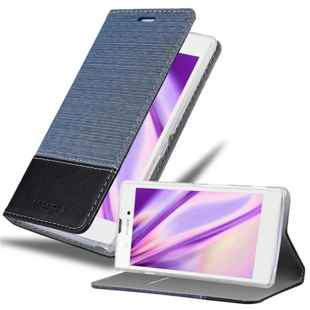 Cadorabo Case, združljiv s Sonyjem v temno modri črni barvi - zaščitni pokrov z magnetnim zapiranjem, stoječo funkcijo in režo za kartico