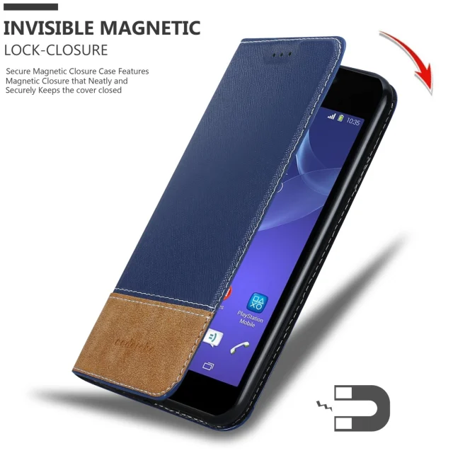 Cadorabo Case, združljiv s Sonyjem v temno modro rjavi barvi - zaščitni pokrov z magnetnim zapiranjem, stoječo funkcijo in režo za kartico