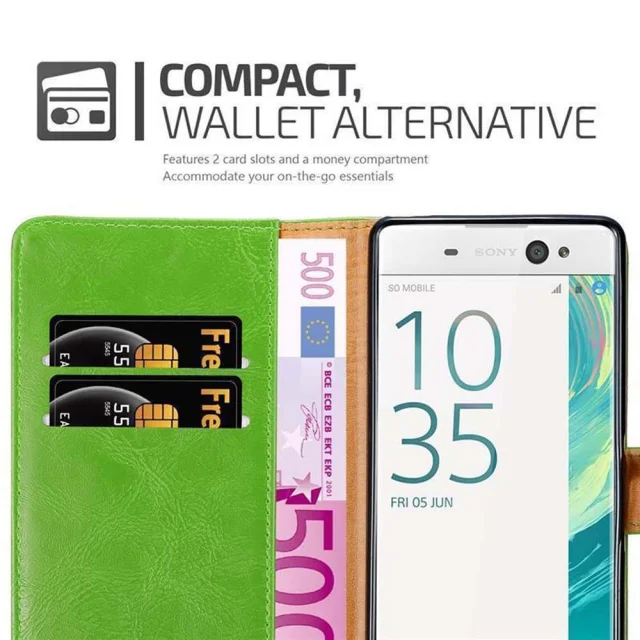 Cadorabo Case, združljiv s Sonyjem v travni zeleni barvi - zaščitni pokrov z magnetnim zapiranjem, stoječo funkcijo in režo za kartico