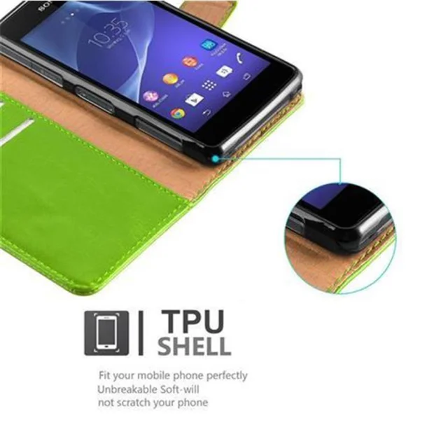 Cadorabo Case, združljiv s Sonyjem v travni zeleni barvi - zaščitni pokrov z magnetnim zapiranjem, stoječo funkcijo in režo za kartico