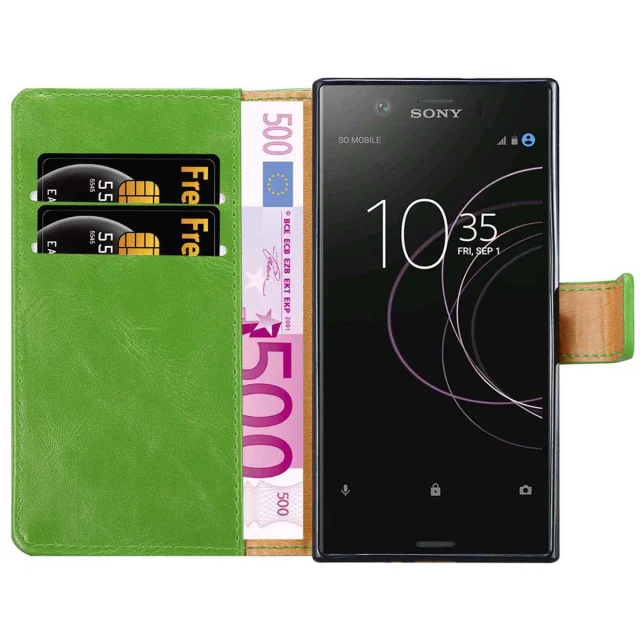 Cadorabo Case, združljiv s Sonyjem v travni zeleni barvi - zaščitni pokrov z magnetnim zapiranjem, stoječo funkcijo in režo za kartico