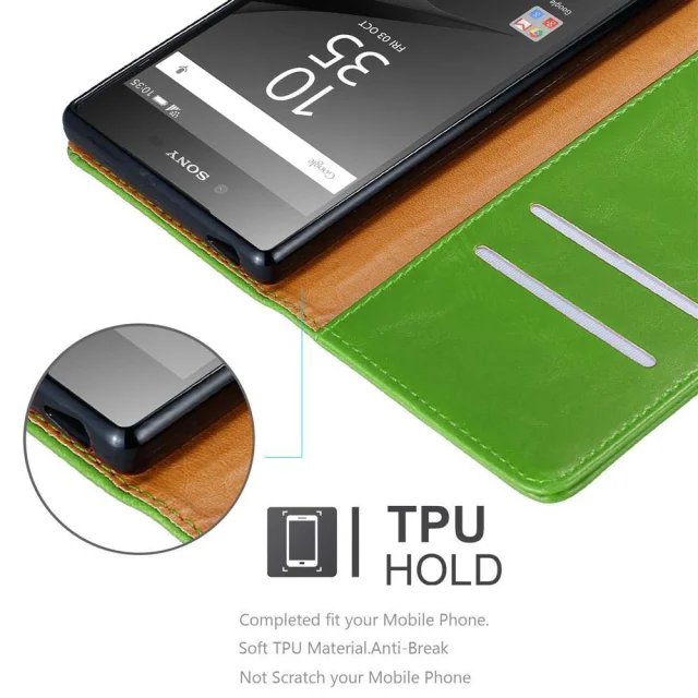 Cadorabo Case, združljiv s Sonyjem v travni zeleni barvi - zaščitni pokrov z magnetnim zapiranjem, stoječo funkcijo in režo za kartico