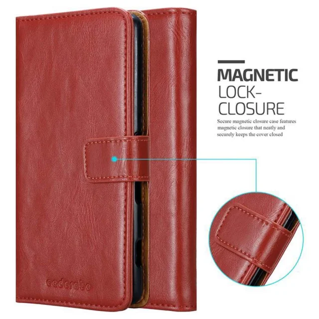 Cadorabo Case, združljiv s Sonyjem v vinu rdeče - zaščitni pokrov z magnetnim zapiranjem, stoječo funkcijo in režo za kartico