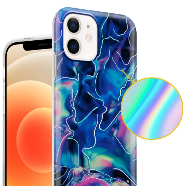 Cadorabo Case, združljiv z jabolkom v modrem roza marmorju št. 17 - zaščitni pokrov iz silikona TPU z vzorcem mozaika