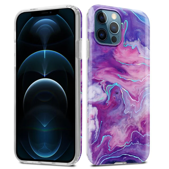 Cadorabo Case, združljiv z jabolkom v vijolično roza marmorju št. 19 - zaščitni pokrov iz silikona TPU z vzorcem mozaikom