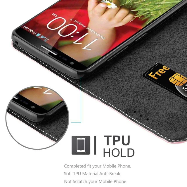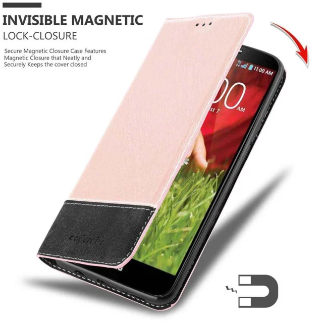 Cadorabo Case, združljiv z LG v rose Gold Black - zaščitni pokrov z magnetnim zapiranjem, stoječo funkcijo in režo za kartico