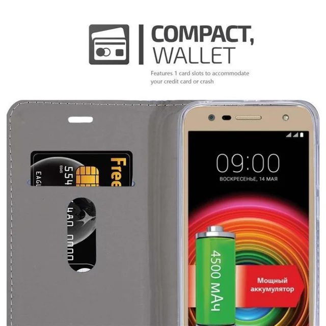 Cadorabo Case, združljiv z LG v sivi črni barvi - zaščitni pokrov z magnetnim zapiranjem, stoječo funkcijo in režo za kartico
